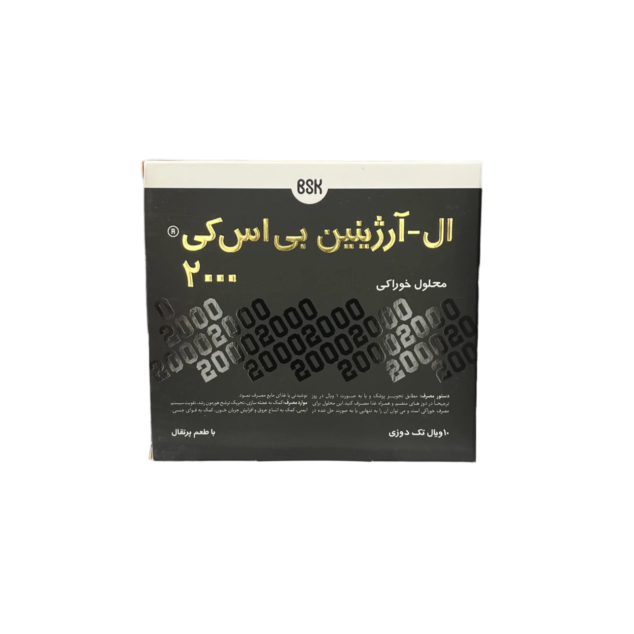 ال آرژنین ۲۰۰۰ میلی گرم بی اس کی حاوی ۱۰ عدد ویال ۱۰ میلی لیتری است. آرژنین در بسیاری از پروسه‌های فیزیولوژیکی نقش دارد. این پروسه‌های فیزیولوژیکی شامل ترشح هورمون‌ها، افزایش ترشح هورمون رشد و افزایش قد، دفع سم‌های تولید شده از مواد در بدن و سیستم ایمنی بدن را شامل می‌شود. ال آرژینین یک اسید آمینه ضروری برای رشد است که در تشکیل فاکتورهای فیزیولوژیک مهمی مانند نیتریک اکساید، اوره، کراتین و پروتئین‌ها نقش دارد. ال آرژینین توسط آنزیم نیتریک اکساید سنتتاز (NOS) در سلول های اندوتلیال رگ به NO تبدیل می‌شود که سبب اتساع عروق می‌شود. همچنین به دلیل نقش ال آرژینین در سنتز پروتئین‌ها، مصرف آن به افزایش توده و حجم عضلانی کمک می‌کند.